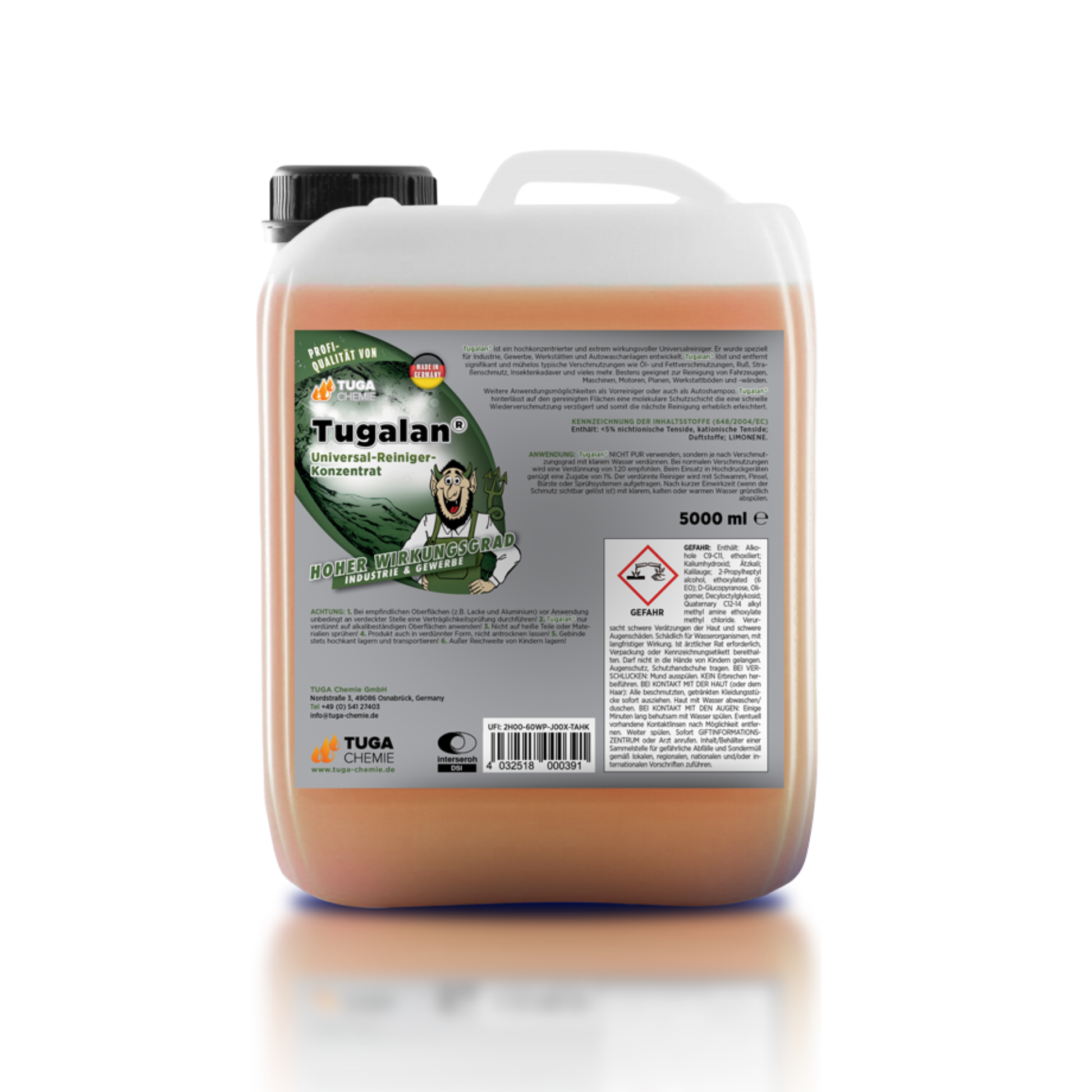 Tugalan® ist ein hochwirksames, vielseitiges Universalreiniger-Konzentrat, ideal für Werkstätten und Fahrzeuge. Mit seiner starken Reinigungswirkung entfernt es mühelos hartnäckige Verschmutzungen wie Öl, Fett, Ruß und Insektenreste. Sparsam und effektiv, lässt sich Tugalan® individuell verdünnen und eignet sich hervorragend für den Einsatz in Hochdruckreinigern und Vorsprühsystemen. Es sorgt für strahlenden Glanz, schützt Oberflächen vor Korrosion und ist dabei umweltfreundlich – perfekt für Industrie, Gewerbe und Kfz-Handwerk.